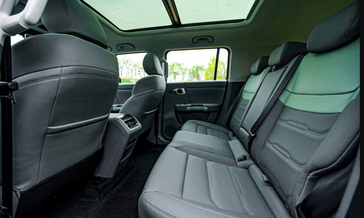 比较BJ40较硬的座椅,这台车座椅提供18mm加厚温情棉,乘坐嗅觉优柔许多,与体魄贴合度更高。空间方面,侃弟身高175cm,腿部有两拳半,头顶两拳略多、横向实足,地板平整。提供地台出风口、USB插口、带双杯架的可翻折扶手,车顶有大尺寸全景天窗。