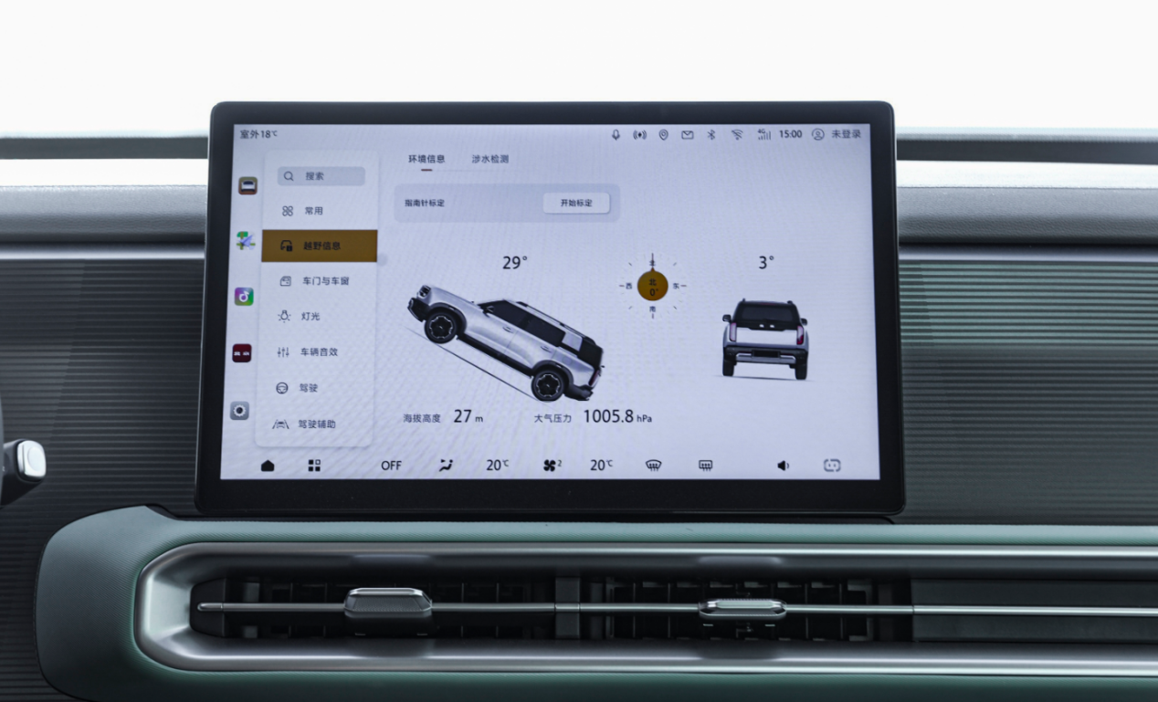 搭载智电ATS全地形终结系统,领有雪地、沙地、泥地、涉水等多种越野驾驶模式,还可披露海拔、气压、倾角、车身朝向等越野参数,有涉水深度和警示信息,在交互体验达到专科越野的体验。